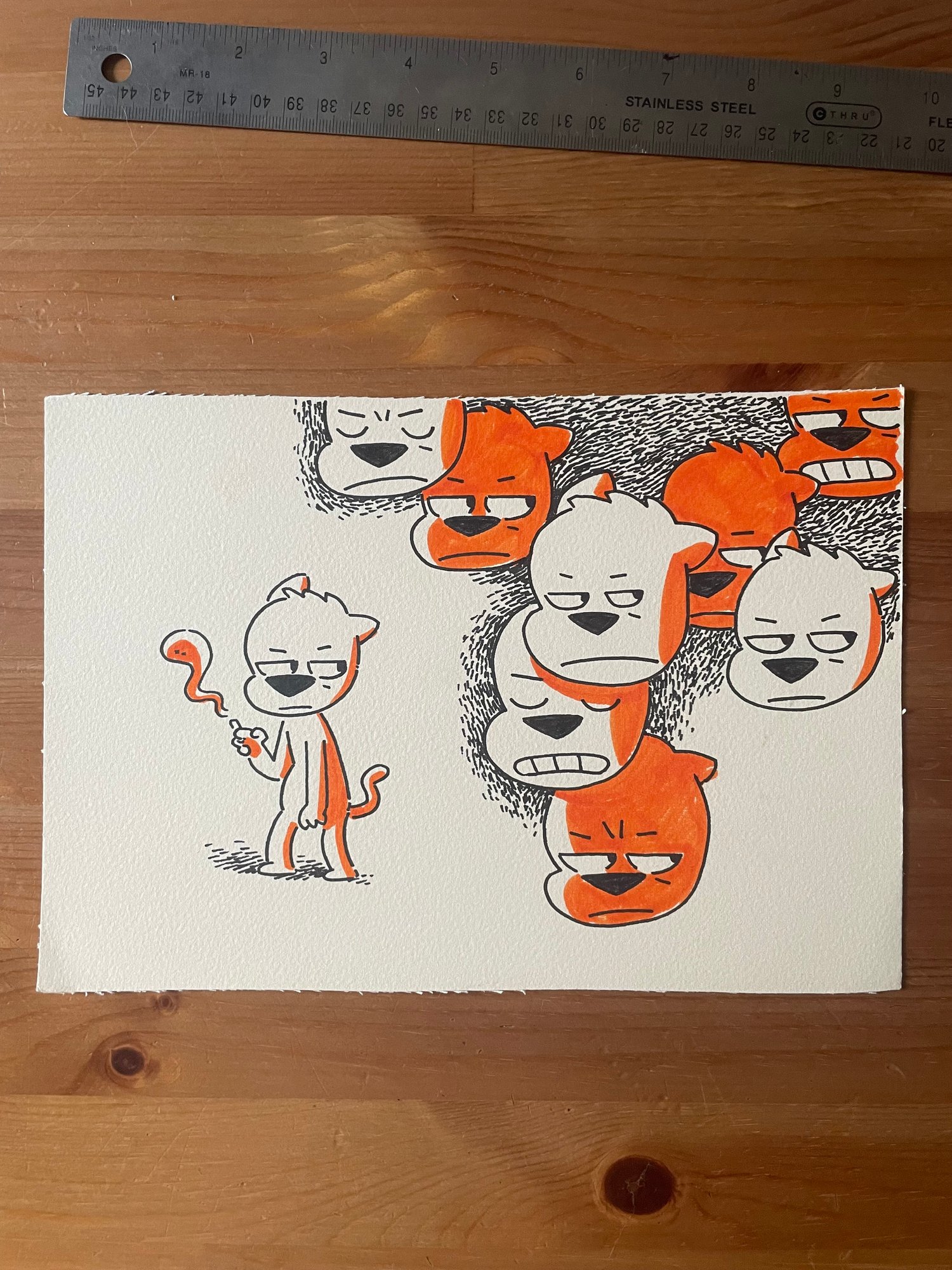 Patrick haunted by his demons, I guess? This was probably 2019 when I bought an orange Crayola marker for some reason. Pen and marker on textured, cream colored cardstock. 10" x 7"