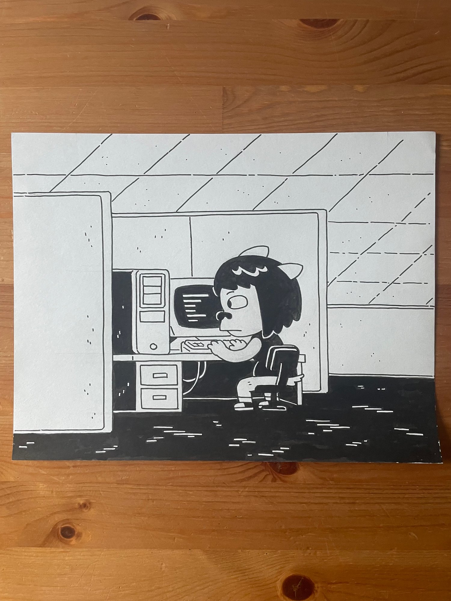 Concept art for The Well. Pen and India ink on gray cardstock. 2020. 11" x 8.5"